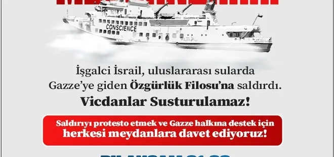 İşgalci İsrail'in Özgürlük Filosu'na uluslararası sularda yaptığı saldırı ve Gazze'deki soykırımı sebebiyle Levent'teki İsrail Konsolosluğu önünde bu akşam saat 21.00'da protesto eylemi düzenlenecek. Eylem, İHH İnsani Yardım Vakfı, Mavi Marmara Derneği ve Filistin Dayanışma Platformu tarafından düzenlenecek.
