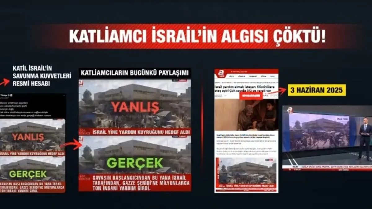 Gazze Şeridi’nde devam eden soykırım ve işgal saldırılarından sonra şimdi de katil İsrail, propaganda faaliyetlerine başladı. Bölgede yaşanan sivil dramı ekranlara taşıyan A Haber, siyonist İsrail’in hedefi haline geldi. İsrail Savunma Kuvvetleri (IDF), A Haber’in 3 Haziran tarihli “İsrail yine yardım kuyruğunu hedef aldı” başlıklı haberini alıntılayarak “Medya hikayeleri” ifadesiyle paylaşım yaptı. Konuyu A Haber ekranlarında değerlendiren Akademisyen Prof. Dr. Uğur Özgöker, söz konusu paylaşımın yalan haber üzerinden yürütülen başarısız bir algı operasyonu olduğunu belirtti.