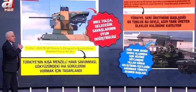 Türk savunma sanayiinin yıldızları dünya basınında boy gösteriyor. “Yıllar süren geliştirme ve testlerin ardından Türkiye resmen başladı” başlıklarıyla verilen haberlerde MKE Tolga ve Altay Tankı düşmanın kalbine korku salıyor. A Haber’e katılan Askeri Stratejist Doç. Dr. Cüneyt Küsmez ve Gazeteci Mete Sohtaoğlu, Tolga ve Altay Tankı’nın nasıl bir sistem olduğu ve ne gibi yeniliklerinin olduğuna ilişkin önemli detaylar verdi.