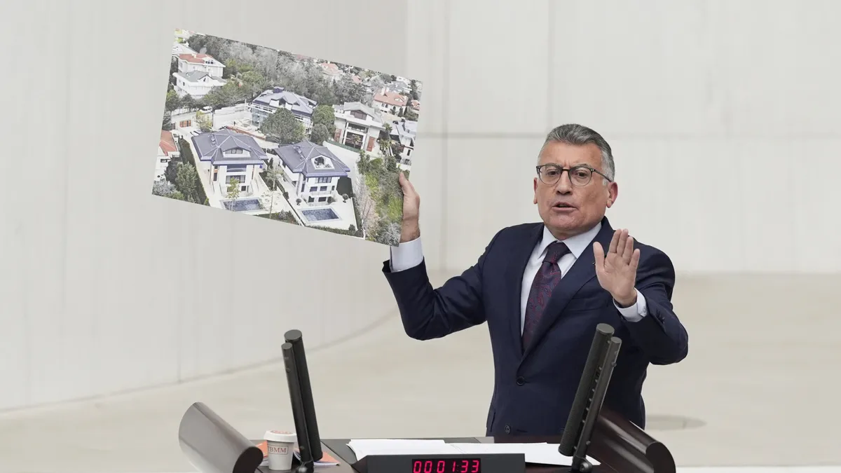 TBMM Genel Kurulu'nda 2026 yılı bütçesinin tümü üzerindeki görüşmeler kapsamında kürsüye çıkan AK Parti Grup Başkanı Güler, üzerinde milyon dolarlık villalar ile arazinin yer aldığı fotoğrafları Genel Kurul'a ve ön sırada oturan CHP lideri Özel'e göstererek iddianamenin villalarla ilgili bölümlerini okudu ve arka arkaya sorular yöneltti.