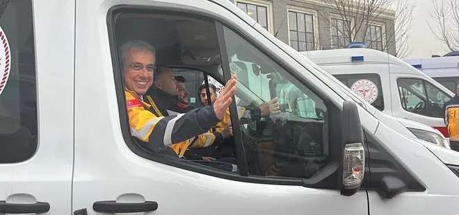 Bakan Memişoğlu, konuşmasının ardından kurdele kesimi sonrası ambulansta deneme sürüşü gerçekleştirdi.