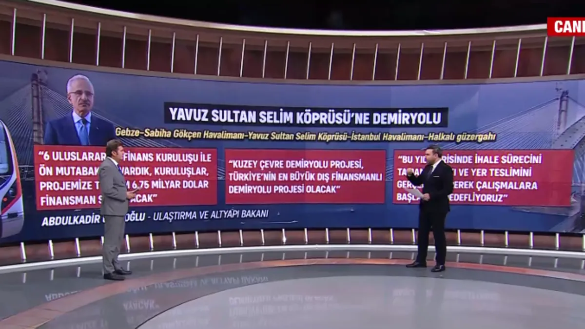 Ulaştırma ve Altyapı Bakanlığı, Yavuz Sultan Selim Köprüsü üzerinden geçecek olan "Kuzey Çevre Demiryolu" projesiyle İstanbul ulaşımında yeni bir dönem başlatıyor. 125 kilometrelik bu dev hat, Gebze'den başlayarak İstanbul Havalimanı ve Halkalı'ya kadar uzanırken, hem yolcu hem de yük taşımacılığında devrim yaratması bekleniyor.