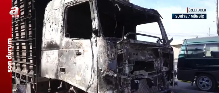 Muhalifler kente giriş yaptıktan sonra bu kamyon patlatıldı bombayla. Bazı yerlerinden hala dumanların çıktığını görebiliyoruz.