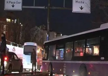 Kadıköy'de İETT otobüsü trafik tabelasına çarptı