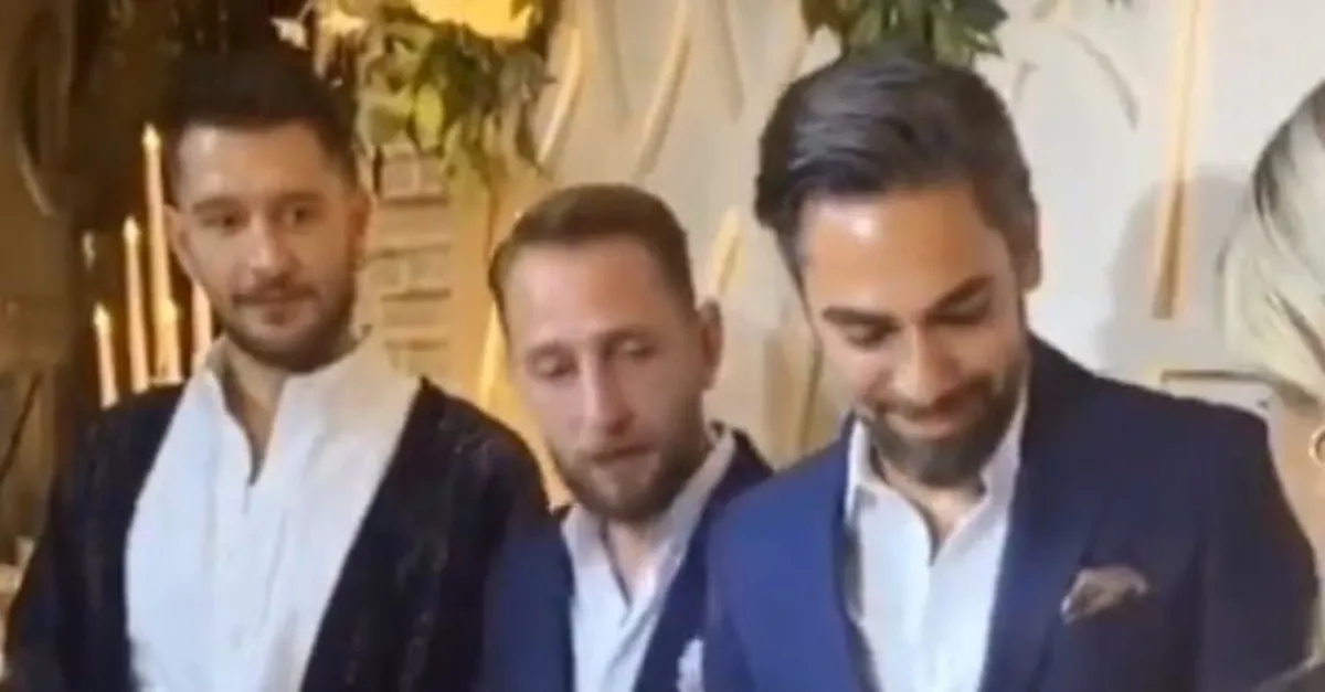 İsmail Akyazıcı ve Didem Keleş’in nişanına Kadir Doğulu ve Uraz Kaygılaroğlu damga vurdu. Ünlü isimlerin akın ettiği törende Kadir Doğulu çiftin yüzüklerini taktı. Ancak nişan yüzüğünü öpüp başına koyunca Uraz Kaygılaroğlu ve damat gülmemek için çabaladı. O anlar sosyal medyanın da diline düştü.