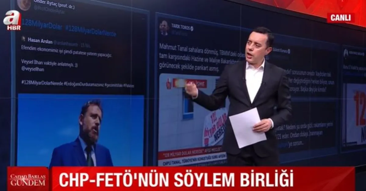 O dönemde CHP ve FETÖ'cü isimlerin söylem birliğinin bugün de 128 milyar dolar gündeminde tekrar yaşandığını belirten Karaman, bu isimlerin paylaşımlarını canlı yayında yorumladı.