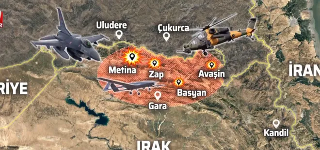 Kandil bölgesindeki 4 hedef hava harekatıyla etki altına alındı. 400 hedef kara, 60 hedef hava kuvvetleriyle vuruluyor.