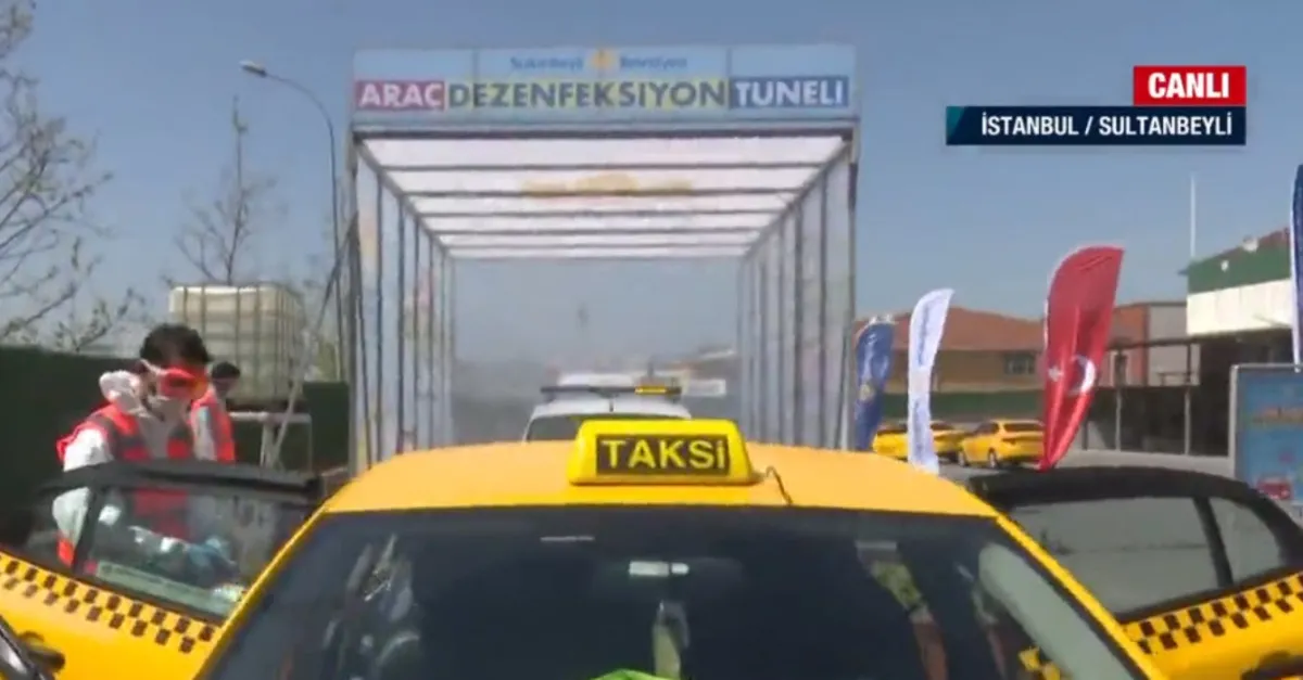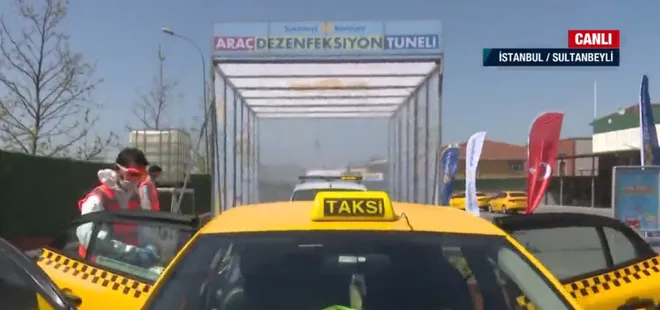 Sultanbeyli’de dezenfeksiyon tüneli kuruldu! Taksi ve minibüsler dezenfekte ediliyor