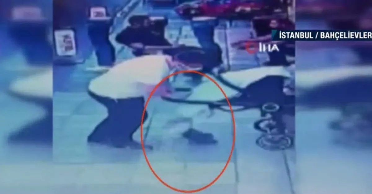 İstanbul Bahçelievler'de bir baba, bebek arabasını sürerken bir işyerine girmek istedi. Tam da bu sırada çocuk arabadan yere düştü.