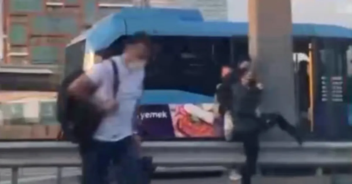 Minibüsler yol ortasında yolcu indiriyor. Trafiğin ortasında kalan vatandaşlar bariyerlerden atlayarak yolun karşısına geçiyor.