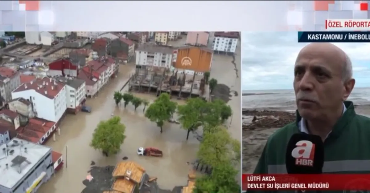 Devlet Su İşleri Genel Müdürü Lütfi Akca A Haber ekranlarına yaptığı açıklamada sel Kastamonu'da yaşanan seldeki son durumu paylaştı.