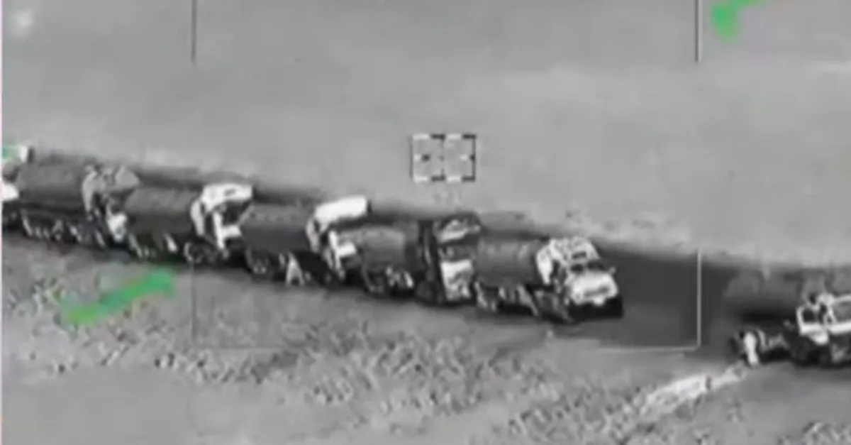 Son dakika haberi... Suriye'deki petrolü yüzlerce araçla Irak'a kaçırdılar. ABD'nin Suriye'de terör örgütü YPG/PKK'nın kontrol ettiği bölgelerde yüzlerce askeri araçla petrol kaçırdığı görüntüler ortaya çıktı. Eski Hava Kuvvetleri İstihbarat Daire Başkanı Gürsel Tokmakoğlu, A Haber canlı yayınında yaptığı değerlendirmede "Şapka düştü kel göründü" ifadelerini kullandı.