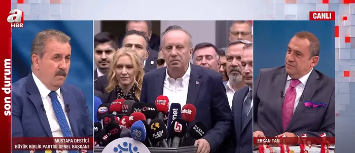 Tarihi 14 Mayıs seçimlerine artık sayılı günler kaldı. Meydanların dili neyi işaret ediyor? Büyük Birlik Partisi Genel Başkanı Mustafa Destici, A Haber canlı yayınında gündeme dair açıklamalarda bulundu. Destici, Memleket Partisi Genel Başkanı Muharrem İnce'nin adaylıktan çekilmesi ile ilgili "İnce'ye ve ailesine yapılmış bir kumpas var." dedi. Destici, 7'li koalisyonun adayı Kemal Kılıçdaroğlu'nu sert sözlerle eleştirerek "Kılıçdaroğlu şimdi hedef saptırmak için ben yapmadım Rusya yaptı diyor." ifadelerini kullandı.