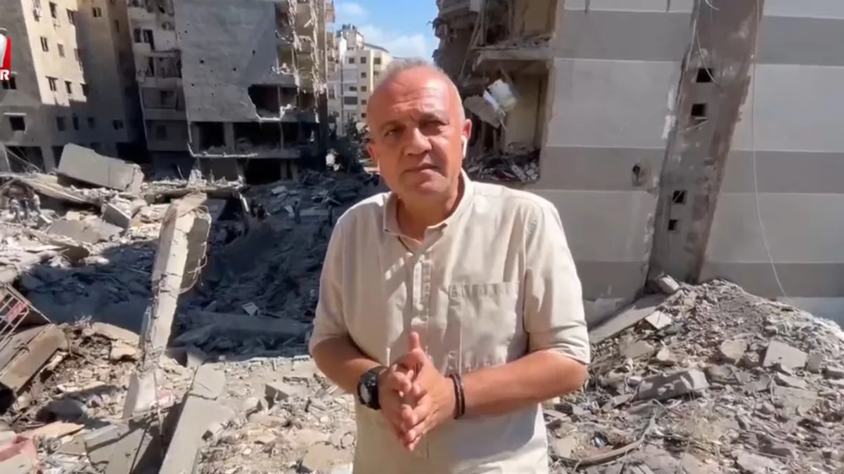 Kurşun, "Hizbullah'ın kalesi konumunda adeta kalbi konumunda olan Dahiye semti burası. Hizbullah üyeleri kamera ile görüntü çekilmesine izin vermiyor. Türk televizyonlarında ilk kez A Haber farkıyla ekranlarına getiriyoruz. İşte İsrail savaş uçaklarının hedef aldığı bir nokta burası. Hala dumanların çıktığını buradan gözlemleme imkanına sahibiz. Yıkımın boyutu gerçekten çok fazla." ifadelerini kullandı.