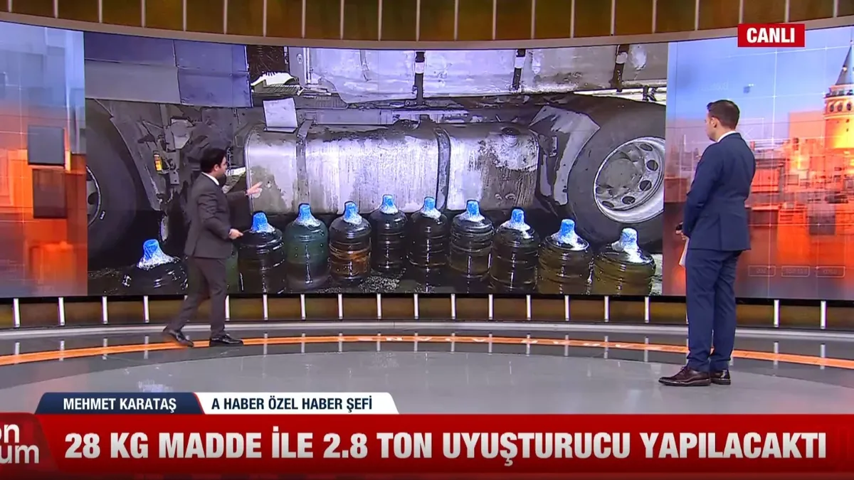 İstanbul Narkotik Suçlarla Mücadele Şube Müdürlüğü ekipleri, zehir tacirlerine göz açtırmıyor. Son 48 saat içinde düzenlenen 5 ayrı operasyonda, şeytanın bile aklına gelmeyecek yöntemlerle yurda sokulmaya çalışılan tonlarca uyuşturucu ve ham maddesi ele geçirildi. Kağıthane'de 28 kilogramlık ham maddeden 2.8 ton uyuşturucu üretileceği tespit edilirken, Sarıyer'de durdurulan bir tırın yakıt deposu ikiye bölünerek gizlenmiş 184 kilogram sıvı metamfetamin bulundu. Bu önemli gelişmenin tüm detaylarını A Haber Özel Haber Şefi Mehmet Karataş, canlı yayında aktardı.