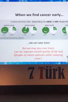 Konferans öncesi TTOD Basın ve Halkla İlişkiler Komisyonu Başkanı ve Yönetim Kurulu Üyesi Prof. Dr. Özlem Er'le sohbet eden Prof. Dr. Esener, kansere karşı yapılan tedaviye vücudun rezistansını, hastanın kendisinin bile kan testiyle yapabileceği bir aşamaya gelindiğini belirtti.