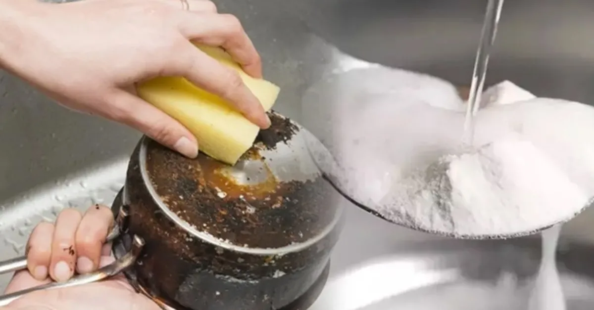 Daha sonra tencereyi oda sıcaklığında bekletin ve soğuduktan sonra tabanı kaplayacak şekilde karbonat dökün. Ardından su ilave edip kaynatın. Lekeler yumuşadığında suyu dökün ve deterjanlı süngerle tencereyi temizleyin.
