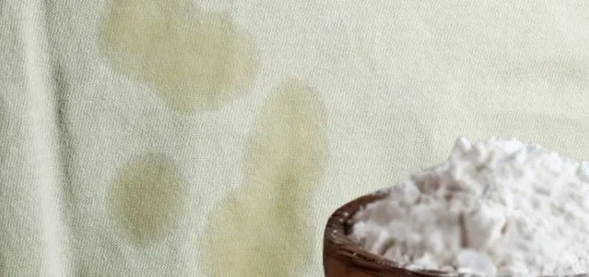 -Mısır nişastasının ya da unun toz yapısı, lekenin dağılmasını önler ve yağı emer. Elinizle hafifçe ovuşturarak tozun yağı emmesine yardımcı olabilirsiniz.