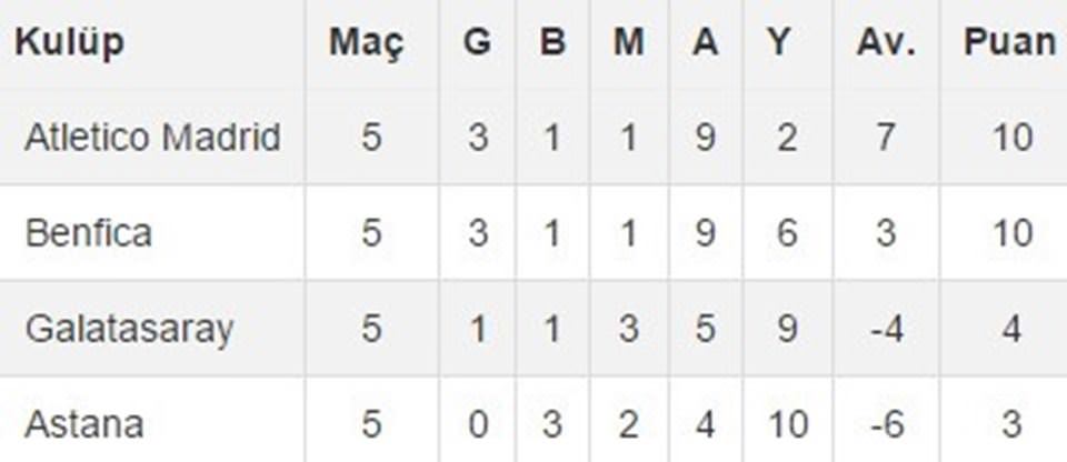 Atletico Madrid ve Benfica'nın ilk iki sırada yer almayı garantilediği C Grubu'da son maçlar öncesi puan durumu şöyle: