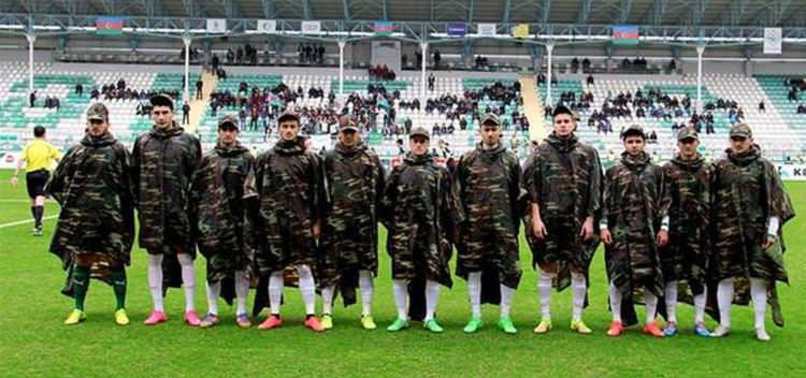 Hazar Lenkeran ekibinin futbolcuları Karabağ takımı ile oynanan maçta sahaya şehitlerin anısına saygı duruşuna askeri kıyafetlerle çıktılar.