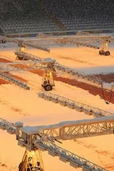 Yoğun kar yağışının devam ettiği kentte stat zeminin zarar görmemesi için çim özel örtü ile korunurken, saha yapay güneş panelleri ile ısıtılıyor.