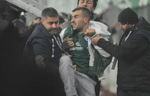 Bursa kale arkasından Volkan Demirel'e atılan maddeler nedeniyle ikinci yarı iki dakika geç başladı. Kale arkasında güvenlik artırıldı.