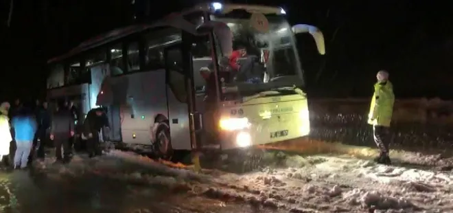 Kendi çabaları ile otobüsü hareket ettiremeyen sporcuların ihbarı üzerine olay yerine giden Erzincan İl Afet ve Koordinasyon Müdürlüğü'ne bağlı ekipler otobüsü saplandığı yerden çıkardı.