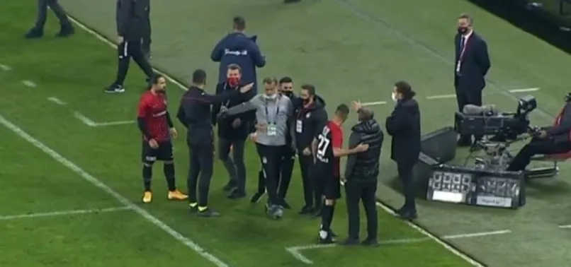 Hem saha içinde hem de saha kenarında tansiyon yükselirken, Beşiktaş yardımcı antrenörü Murat Şahin ile Gaziantep FK teknik direktörü Sumudica kısa süreli bir gerginlik yaşadı.