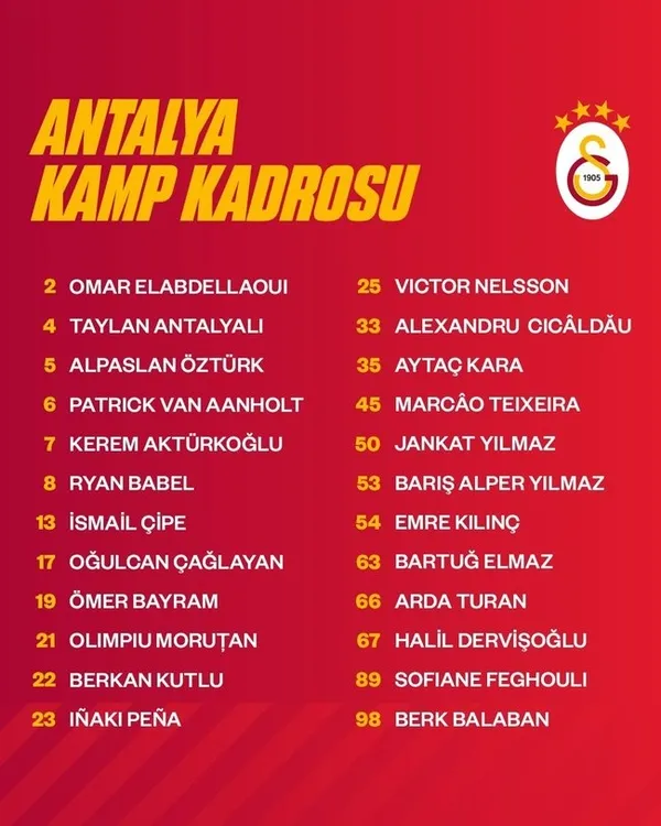İşte Galatasaray'ın kamp kadrosu