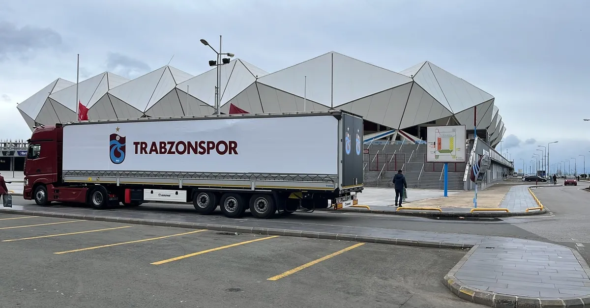 Trabzonspor'un yardım kampanyası çerçevesinde, Şenol Güneş Spor Kompleksi'nde hazırlanan, giyim malzemelerinin yanında uyku tulumu ve su gibi yaşam malzemelerini taşıyan 2 TIR, Malatya'da bulunan AFAD yardım aktarma merkezine ulaşmak üzere yola çıktı.