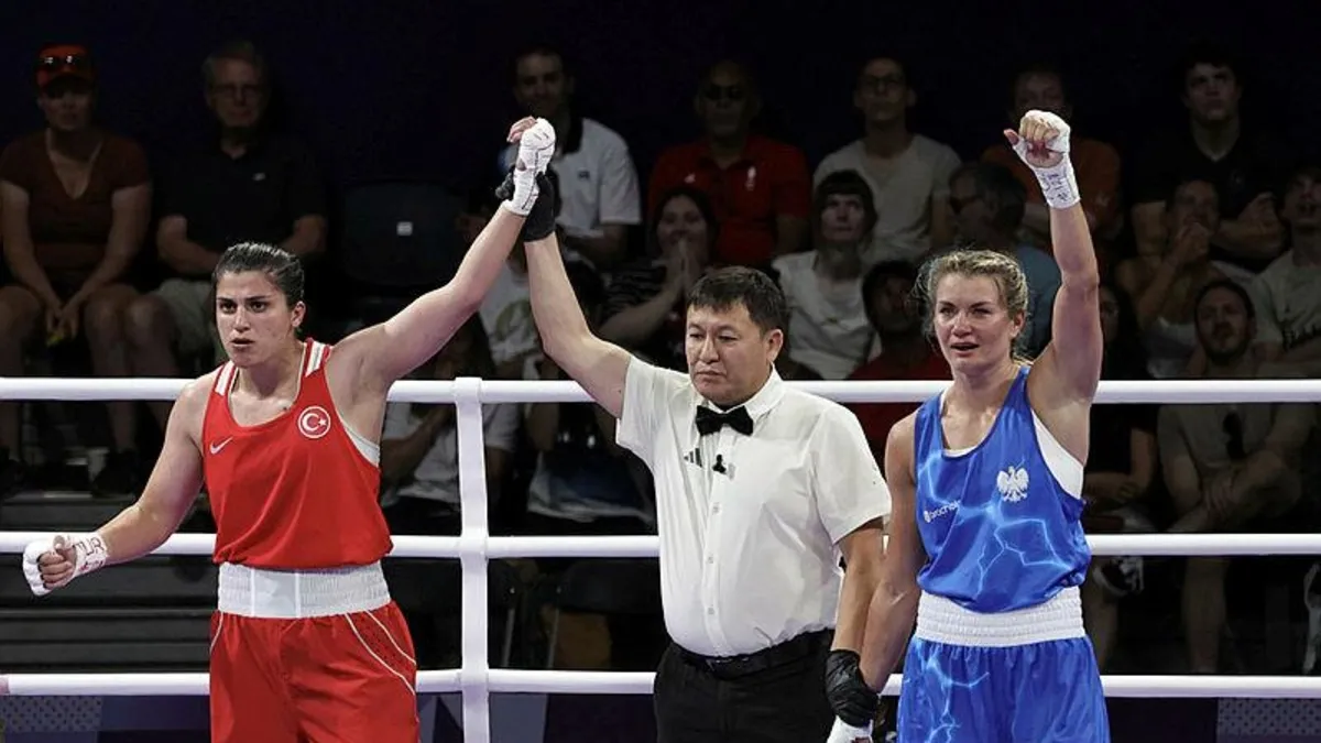 Son olimpiyat şampiyonu milli boksör Busenaz Sürmeneli, Polonyalı Aneta Rygielska'yı 4-1 yenerek çeyrek finale yükselme başarısı gösterdi.