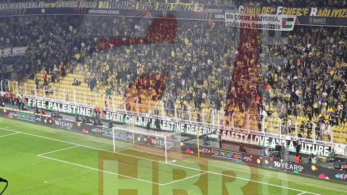 Fenerbahçe taraftarı, maç öncesinde Filistin'e destek amacıyla anlamlı bir pankart açtı. Tribünleri dolduran sarı-lacivertli taraftarlar, "Bir çocuk ağlıyorsa, coğrafya önemsizdir" ve "Özgür Filistin" yazılı pankartlarla Filistin halkına destek mesajı verdi.