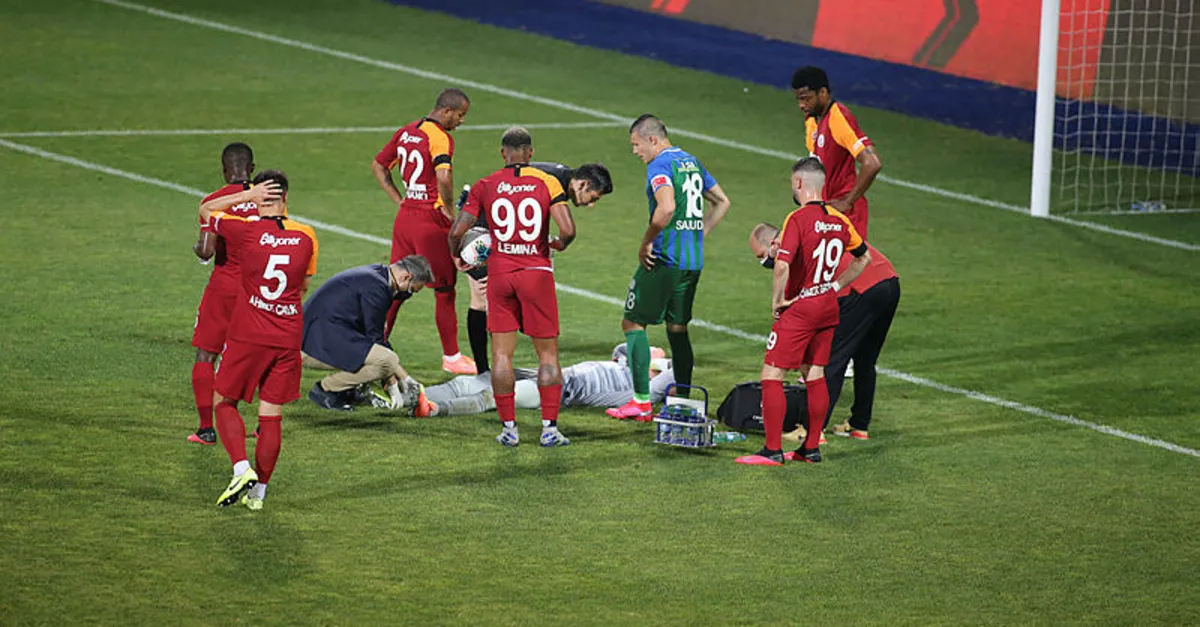 Çaykur Didi Stadyumu'nda oynanan mücadelenin 15'inci dakikasında Rizesporlu Skoda'nın vuruşunu kurtaran Muslera, rakibiyle çarpıştıktan sonra yerde kalarak sakatlık yaşadı. Yedek kulübesinde bulunan kaptan Selçuk İnan, hakemden izin isteyerek sahaya girip Muslera'nın yanına gelirken, tecrübeli kaleci için ambulans çağrıldı. Muslera, sahada yapılan ilk müdahalenin ardından da ambulansla hastaneye götürüldü.