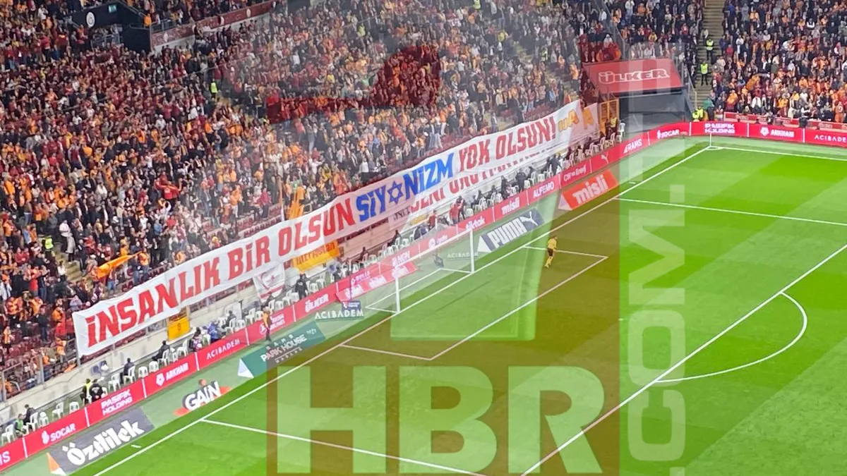 Trendyol Süper Lig’in 29. haftasında oynanan Galatasaray - Kocaelispor mücadelesinde sarı-kırmızılı taraftarlar, soykırımcı İsrail’in zulmüne sessiz kalmadı. Başta Gazze olmak üzere Lübnan ve İran’da alçak saldırılarını sürdüren terör devleti İsrail’e, tribünlerde açılan dev pankartla tokat gibi bir cevap verildi.
