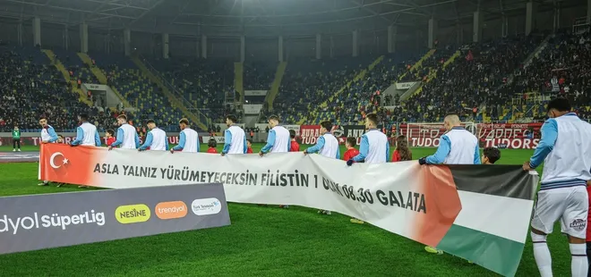 Trabzonspor, Gençlerbirliği mücadelesine “Asla Yalnız Yürümeyeceksin Filistin!” pankartıyla seremonide çıktı