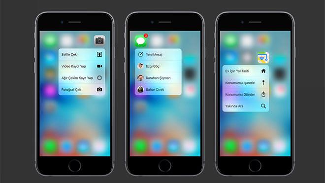 iPhone 6s ve iPhone 6s Plus'ın en dikkat çeken özelliği şüphesiz ekranında kullanılan 3D Touch teknolojisi. Apple Watch ve MacBook cihazlarında kullanılan Force Touch teknolojisi nam-ı diğer 3D Touch yeni iPhone modellerinde de kullanılıyor. Bu teknoloji sayesinde iPhone 6s ve iPhone 6s Plus, cihaza dokunurken uygulanan basıncı ölçebiliyor. Basınç ölçümü özelliğiyle yeni iPhone'lar ekrana hafifçe dokunma ile güçlü bir şekilde bastırma arasındaki farklı algılayabiliyor.