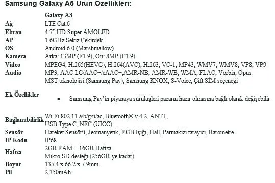 Samsung Electronics, etkileyici tasarım, güçlü performans ve üst düzey kolaylık sunan 5.7 inç A7, 5.2 inç A5 ve 4.7 inç A3 akıllı telefonlarının yer aldığı yeni Galaxy A serisini Türkiye’de satışa sundu. Galaxy A serisi akıllı telefonlar tüm Samsung mağazalarında ve yetkili satış noktalarında raflarda yerini aldı.