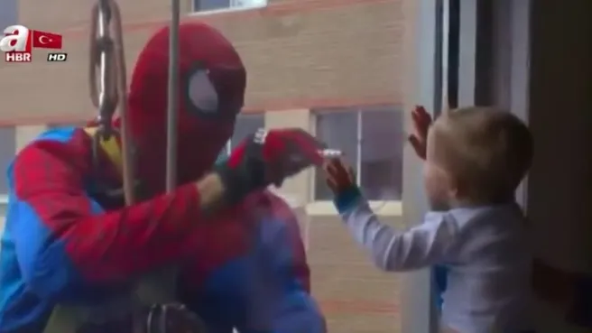 ABD'de bir hastanede tedavi gören çocuklar gördükleri manzara karşısında şaşkına döndü. Çünkü camlarını, hayranı oldukları süper kahramanlar siliyordu.