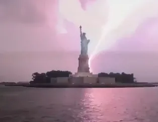 Son dakika haberi... ABD'nin sembol yapılarından biri olan New York'taki Özgürlük Heykeli'ne yıldırım düştü. O anlar sosyal medya kullanıcısı tarafından kayda alındı. İşte o görüntüler...