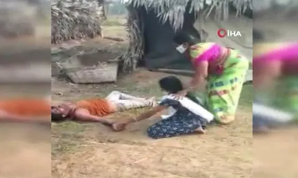 Hindistan'da Covid-19'a yakalandığı için köyündeki halk tarafından dışlanan adama, kızı su vermek istediği sırada annesi tarafından engellendi. Kızın babasına yardım etmek için feryat ettiği anlar ise ülkenin gündemine oturdu.