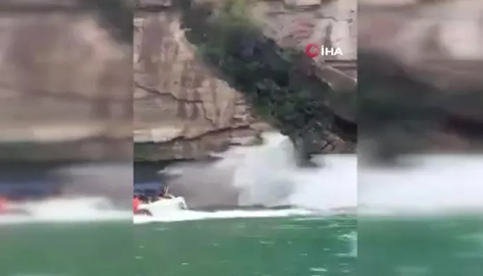Dev kaya parçası teknelerin üzerine düştü: Ölü ve yaralılar var | Korku dolu o anlar kamerada