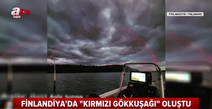 Finlandiya'da nadir yaşanan bir doğa olayı meydana geldi. Paijanne bölgesinde bir gölün üzerinde kırmızı gökkuşağı oluştu.