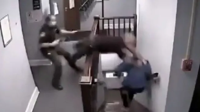 Olay, ABD'nin Ohio eyaletindeki Highland ilçesinde meydana geldi. Highland İlçe Mahkemesi'ne çıkarılan ve uyuşturucu bulundurmaktan suçlu bulunan Nickolaus Garrison, bir yıl hapis ve 2 bin 500 dolar (19 bin TL) para cezasına çarptırıldı. Garrison, cezası yargıç tarafından okunduğu sırada mahkeme binasından kaçtı. Güvenlik kamerasınca kaydedilen görüntülerde, Garrison'ın aniden koşmaya başladığı, polislerin de arkasından koştuğu görüldü. Merdivenleri hızla indiği sırada polislerden birinin merdiven boşluğuna atladığı ancak Garrison'ı yakalamadığı ve düştüğü kameralara yansıdı.