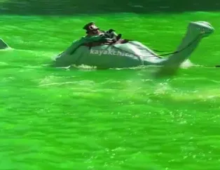 İLGİNÇ ANLAR! YEŞİLE BOYANDI