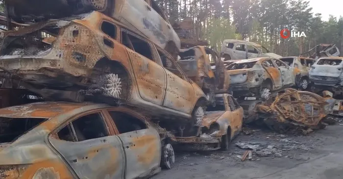 Ukrayna'ya yönelik Rus saldırılarından en fazla etkilenen kentlerden biri olan İrpin'de yaşayanlar evlerini terk ederek ayrılmıştı. Bölge halkı araçlarını yolda bırakıp kentten ayrılmıştı. İrpin halkının bıraktığı araçlar açık alana çekildi.
