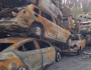 Saldırılarda yanan araçlar hurdaya dönerken, kullanılamaz hale gelen araçların çekildiği alan ise araç mezarlığına döndü. Üst üste yığılan araçlar, savaşın şiddetini gözler önüne serdi. Bazı araçların üzerindeki "çocuk var" yazıları dikkat çekti.