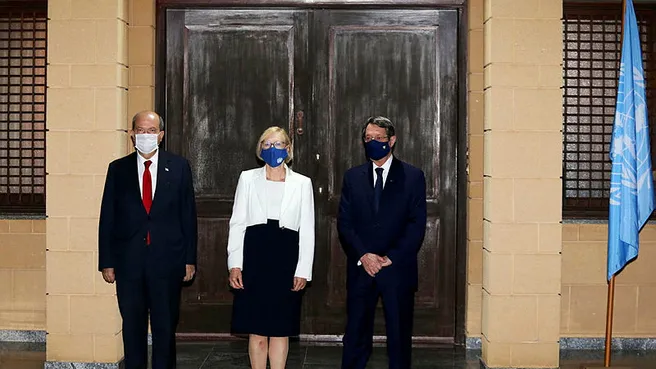KKTC Cumhurbaşkanı Tarar ile Rum Yönetimi Lideri Anastasiadis'in, Birleşmiş Milletler Genel Sekreteri'nin Kıbrıs Özel Temsilcisi Elizabeth Spehar'ın ara bölgedeki ikametgâhında yer alan görüşmesi, Türkiye saati ile 20.10'da başladı.