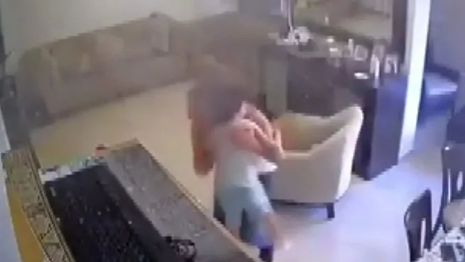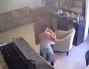 Baba, kucakladığı oğlunu can havliyle masanın altına saklayarak korumaya çalıştı. Babanın panik anları güvenlik kamerası tarafından saniye saniye kaydedildi.