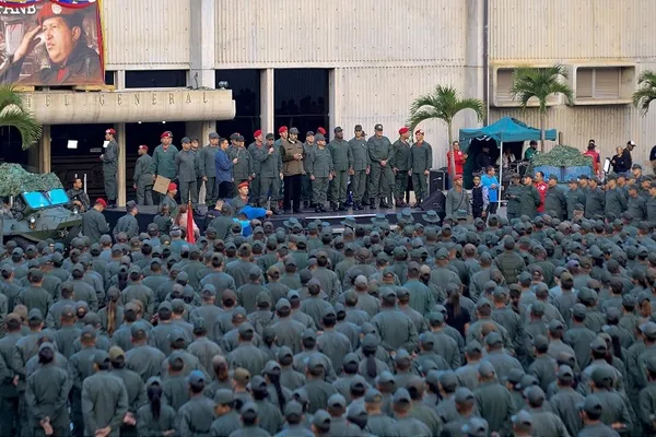 Venezuela'nın başkenti Caracas'ın güneyinde Bolivarcı Ulusal Silahlı Kuvvetlere (FANB) ait büyük askeri kampüs Fuerte Tiuna'yı sabahın erken saatlerinde ziyaret eden Devlet Başkanı Nicolas Maduro, buradaki askeri akademinin bahçesinde yüzlerce asker tarafından karşılandı.
