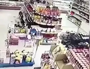 Markette deprem anları kamerada